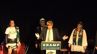 sjungit sin hyllningsång LSK med text av Magnus Fogelberg och musik av Benny Andersson och Björn Ulvaeus (SOS) återkommer Kramp på scenen och berättar om en konflikt med Nordkosters fotbollslag som leds av